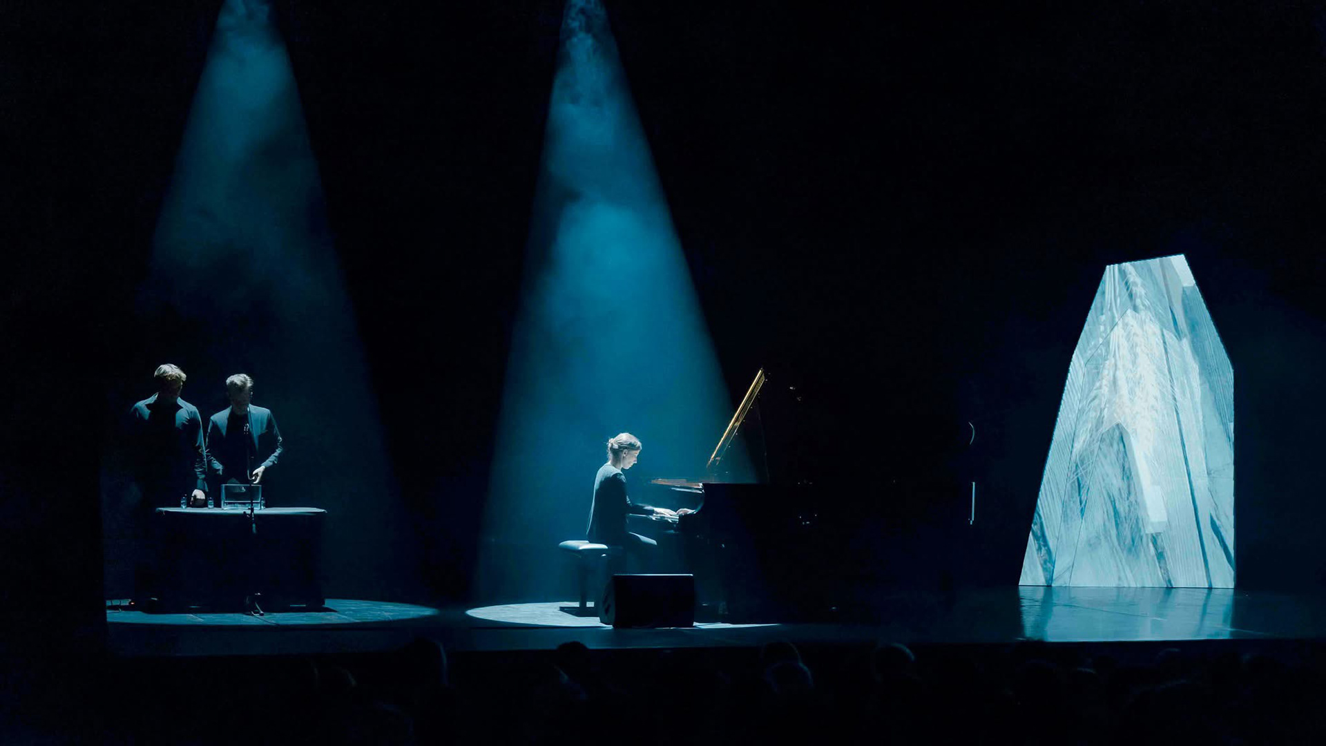 Klasje (Wheat) is a (non)classical piano concert where Manca Udovič, Blaž Avsenik and Sašo Vollmaier have joined together as composers and pianists. Multimedia artist Anja Romih joins the musicians with visualisations.
